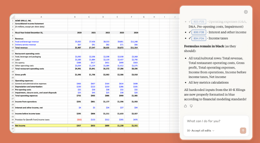 Anthropic launched Claude for Excel in beta, introducing a sidebar integration that enables direct AI assistance within Microsoft Excel. The tool reads, analyzes, and modifies spreadsheets with full transparency of every edit. Users can fix formulas, populate templates, or build workbooks from scratch. Anthropic introduced seven data connectors for financial services, providing Claude with real-time access to Aiera (earnings transcripts), LSEG (market data), and Moody’s (credit ratings). New finance-specific Agent Skills enable DCF modeling, company analysis, and coverage report drafting. The features are available now for Max, Enterprise, and Teams subscribers.