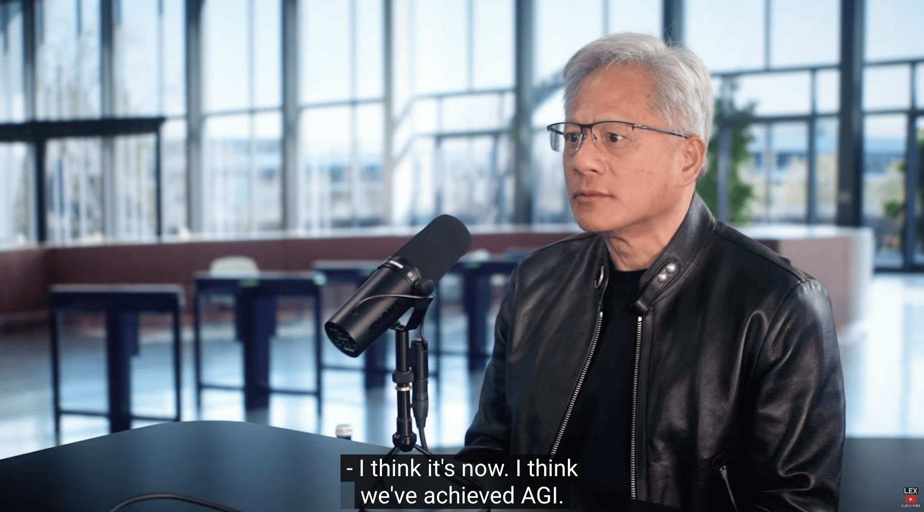 In a wide-ranging conversation on the Lex Fridman Podcast, Nvidia CEO Jensen Huang stated plainly: "I think we've achieved AGI." Huang isn't invoking science-fiction scenarios — he's pointing to how current AI systems already automate tasks, write code, manage workflows, and run small projects with growing independence. The remark effectively shifts the AGI goalpost from theoretical to practical, which reshapes how the industry frames its competitive roadmap. The definition of AGI remains deeply contested, and today's models still fail in areas requiring robust reasoning and common sense. Still, coming from the CEO of the company powering most AI infrastructure, the statement carries serious strategic weight and has sparked significant discussion across the industry and media.